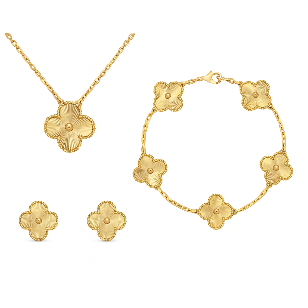 Succombez à l'élégance intemporelle de cet Ensemble 3 Pièces complet. La Parure Trèfle Fleur Chance n'est pas qu'un simple bijou : c'est un symbole de bonheur et d'espoir, magnifié par un design délicat et un luxe quotidien.